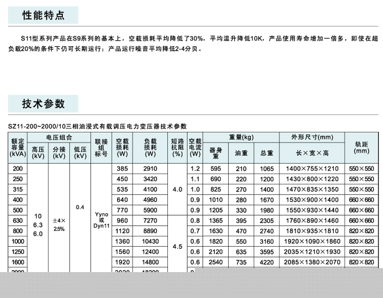 SZ11-200~2000/10三相油浸式有载调压电力变压器