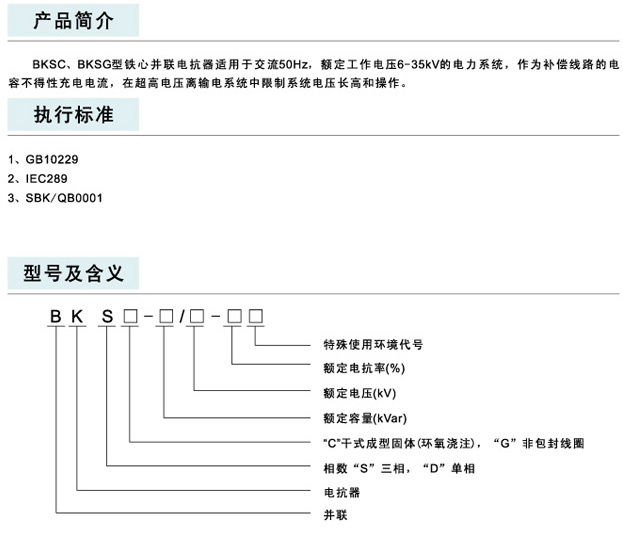 BKSC、BKSG铁心并联电抗器
